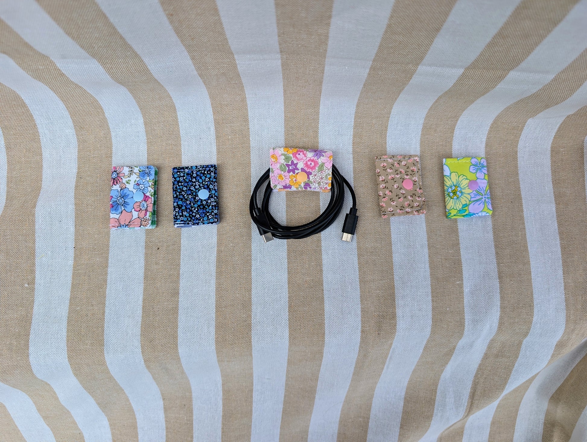 Tame the tangle with this handy cord keeper, perfect for organising charging cables, earphones, or small cords. Lightweight and compact, it snaps neatly around your cords to keep your bag or desk clutter free. Each one is made by pairing a lovely floral with coordinating gingham in a colour way to suit your style, making it a practical little helper you’ll use every day. Pairs perfectly with a Zippered Pouch to keep your tech accessories neat on the go.
