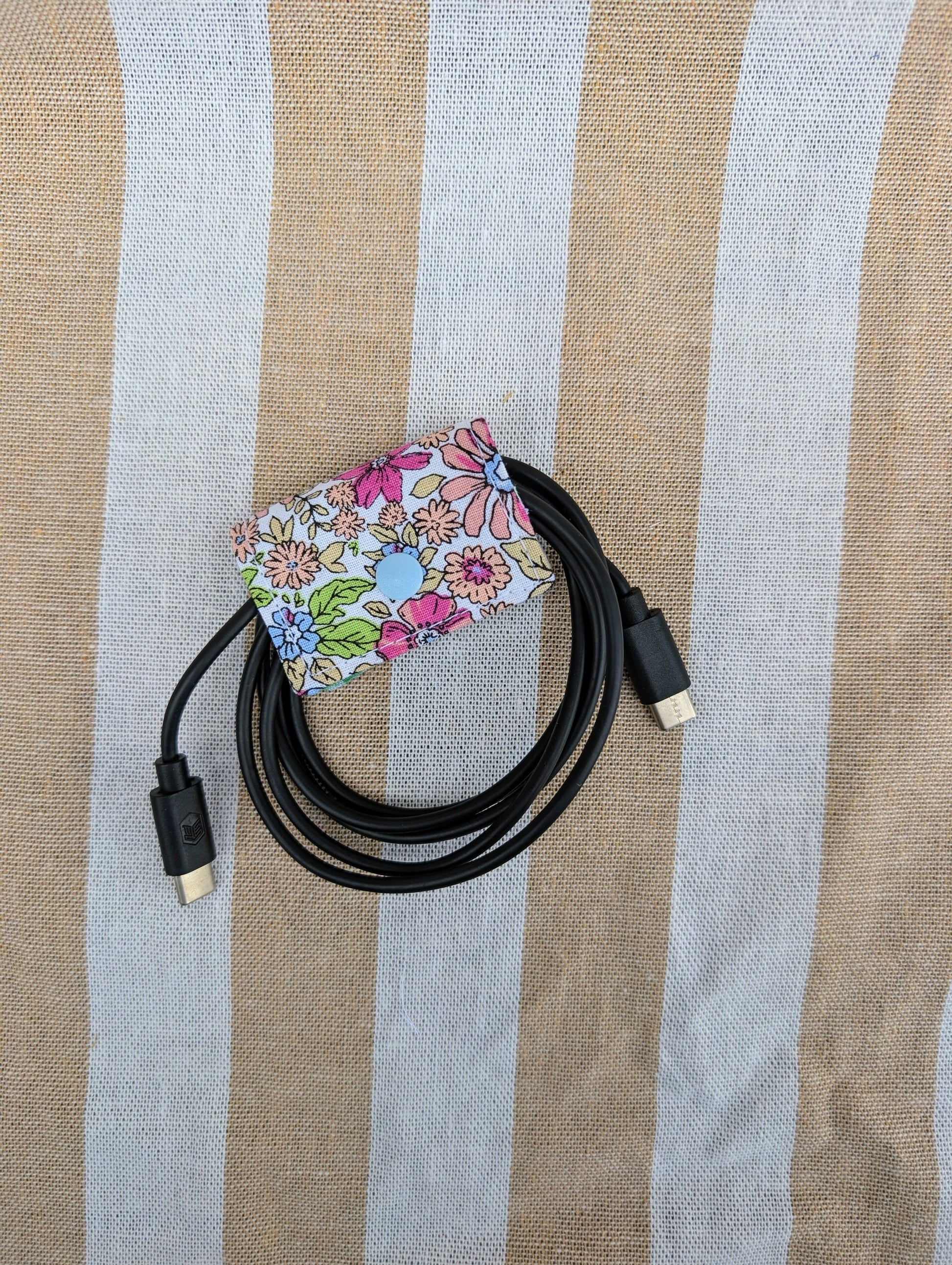 Tame the tangle with this handy cord keeper, perfect for organising charging cables, earphones, or small cords. Lightweight and compact, it snaps neatly around your cords to keep your bag or desk clutter free. Each one is made by pairing a lovely floral with coordinating gingham in a colour way to suit your style, making it a practical little helper you’ll use every day. Pairs perfectly with a Zippered Pouch to keep your tech accessories neat on the go.