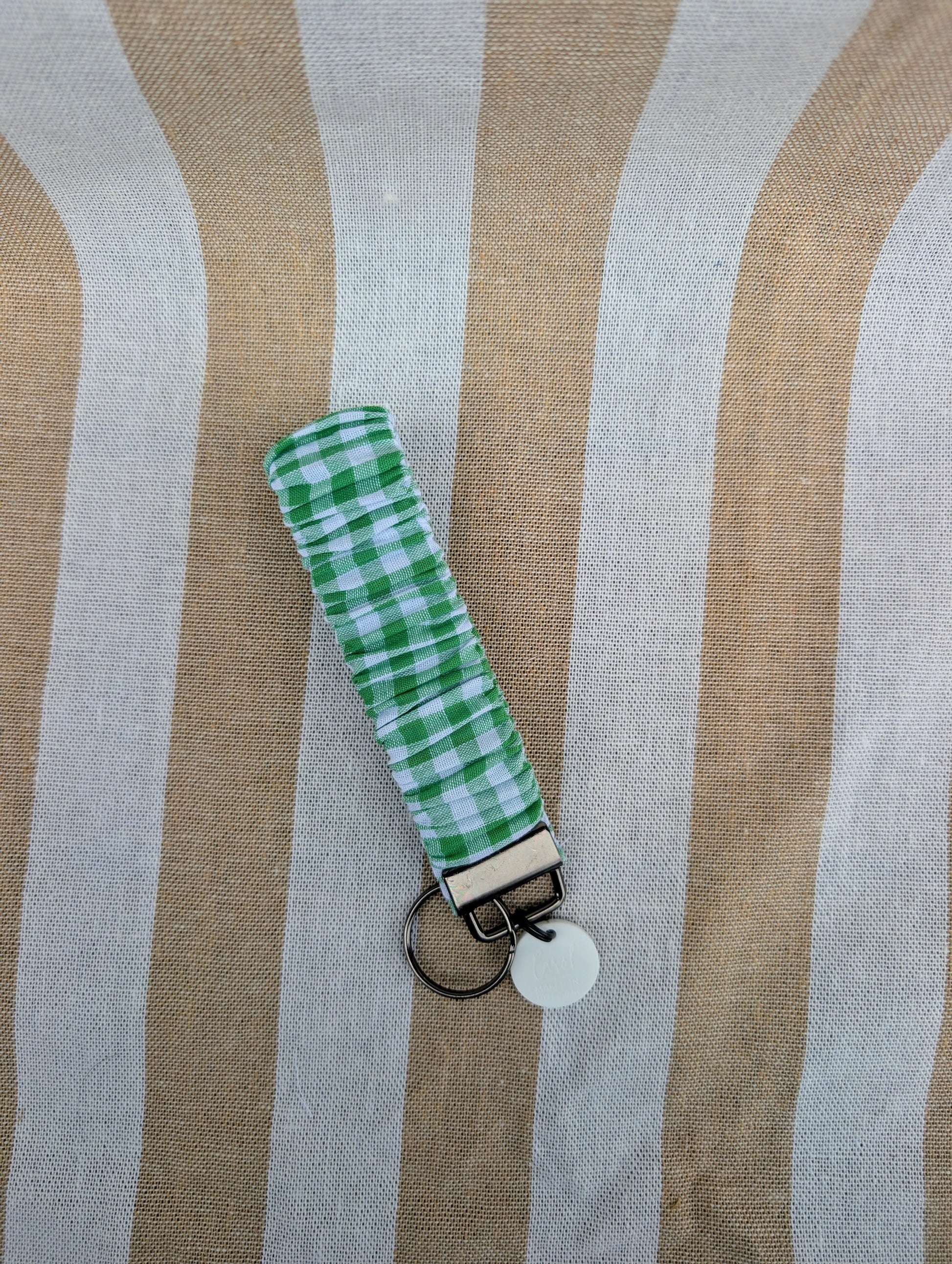Part scrunchie, part wristlet, part keychain — this clever accessory keeps your keys secure and your hands free. The gathered wristband is sewn from a pairing of lovely floral with coordinating gingham in a colour way to suit your style, bringing a playful twist to your everyday carry. Perfect for quick errands, walking the dog, or finding your keys in a busy bag. Matches beautifully with a Reversible Tote Bag for an everyday set.